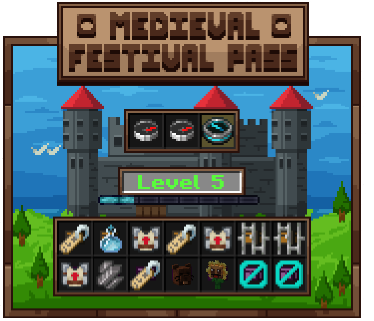 This pass can be viewed with /pass. Every day there will be 3 random tasks that appear. The first 2 tasks are free while the other 1 can only be completed if you have the premium pass. Completing quests will earn you pass XP which will increase your pass level up to the maximum of level 7. One quest can be completed on the realm of your choice and the other will be on the Festival.