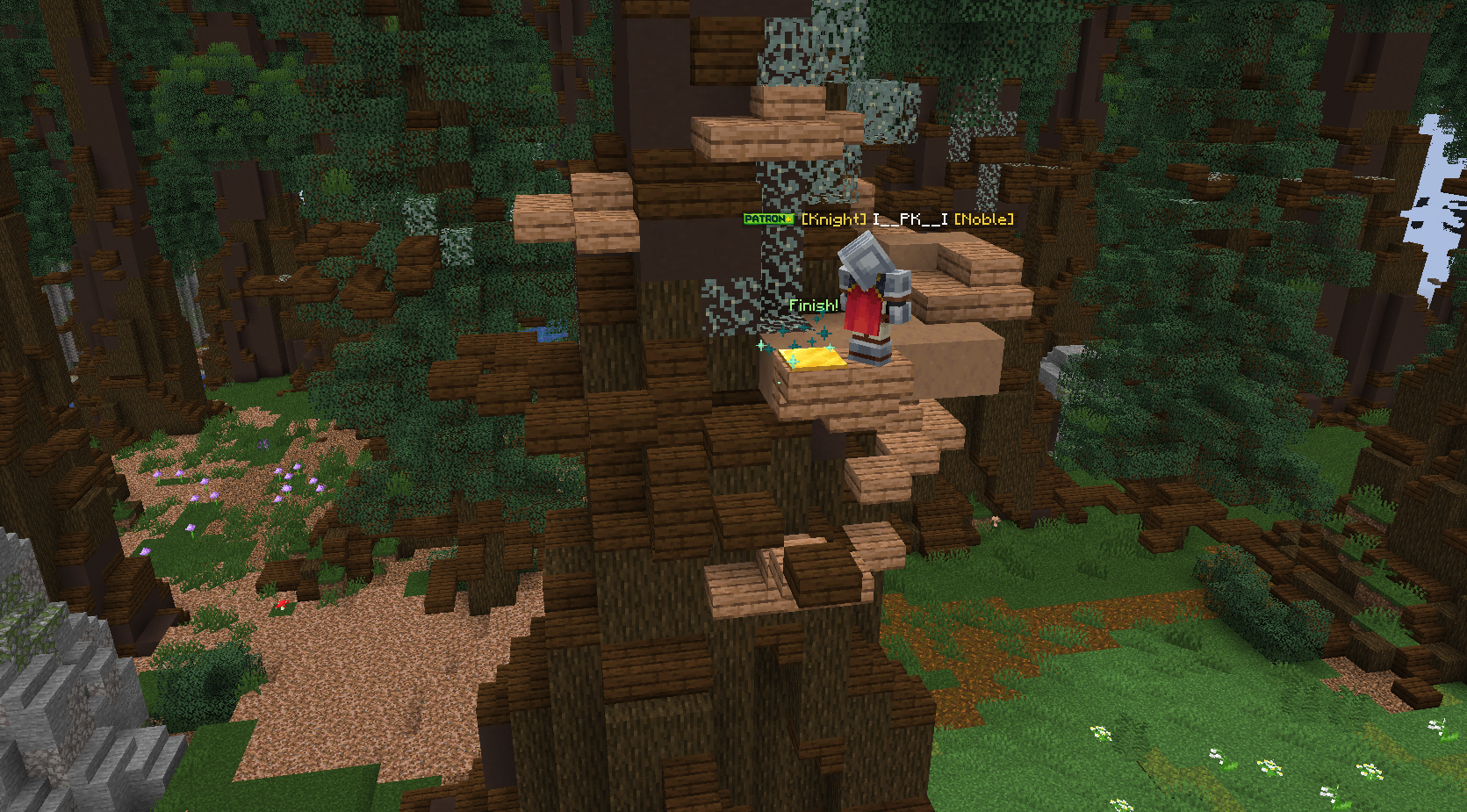 In the Forest, you can test your luck with the Glade Parkour. You can attempt the parkour three times a day. There is a leaderboard where you start that shows the top 5 players with the lowest time. When you complete the Parkour you will receive 1x Ancient Tree Bark.