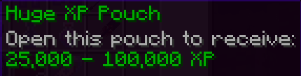 When you right-click on an xp bottle or pouch, you will receive a specific or random amount of xp, depending on the type of bottle/pouch, which is stated in the item's description. When redeemed the amount will appear above your hotbar.