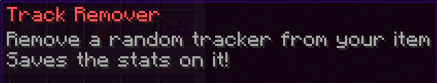 There are three distinct trackers that can be applied to tools: one to keep track of the amount of blocks broken, one to count player kills, and one that counts mobs killed. To apply a trak orb to a tool or weapon, drag-and-drop the same way as with a custom enchantment.