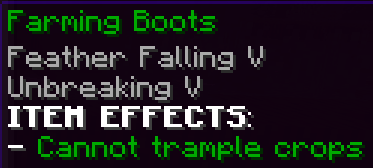 Wearing these custom boots, which has Feather Falling 5, gives Speed 4 and a 25% boost when earning Crossbows McMMO xp.