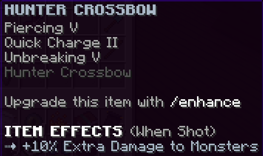 A custom crossbow that has Mending, Piercing 3, Quick Charge 3, and does 50% more damage to mobs.