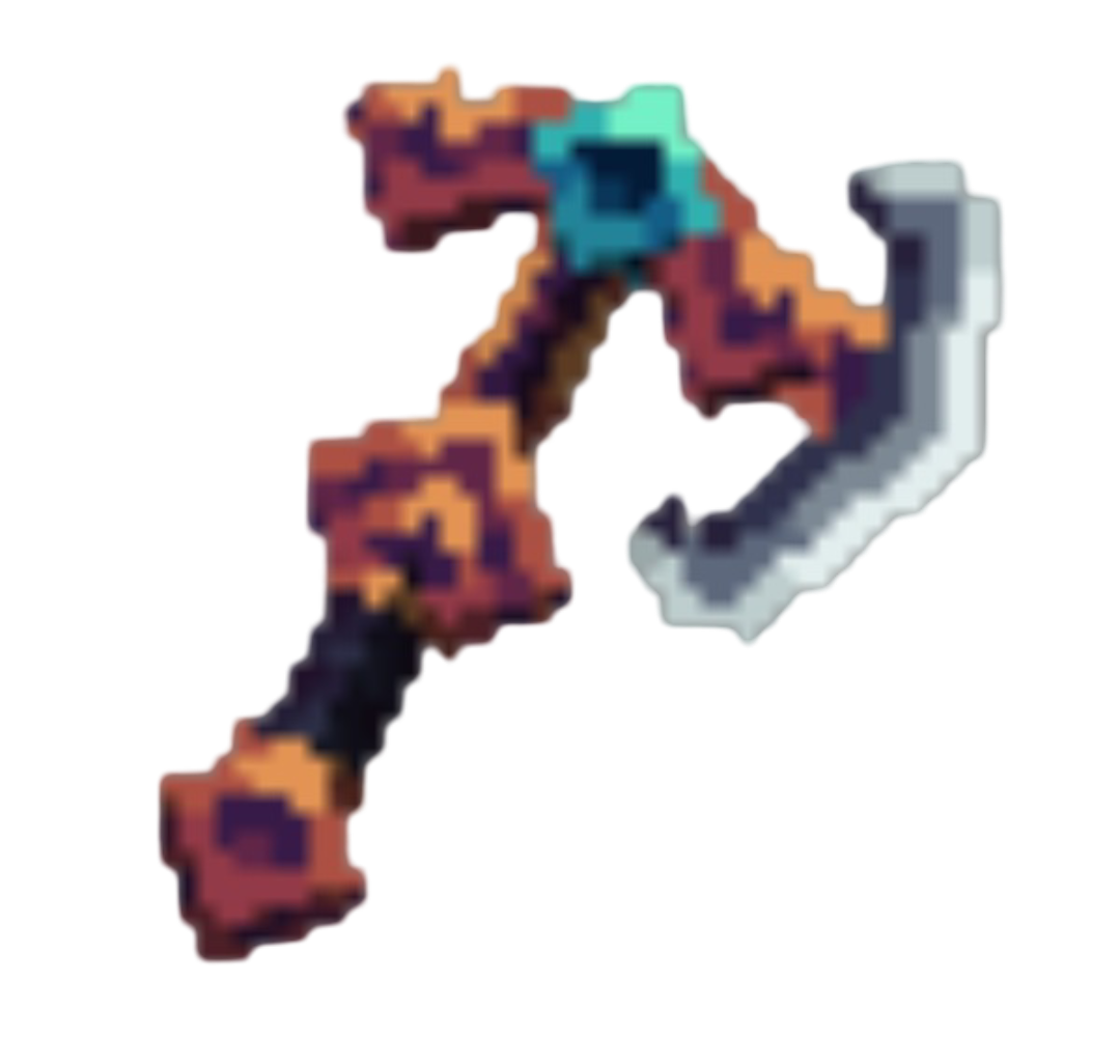 A custom axe that has Sharpness 6, Knockback 2, Looting 4, Efficiency 8, and is Unbreakable. This axe can act like a grappling hook when right clicked.