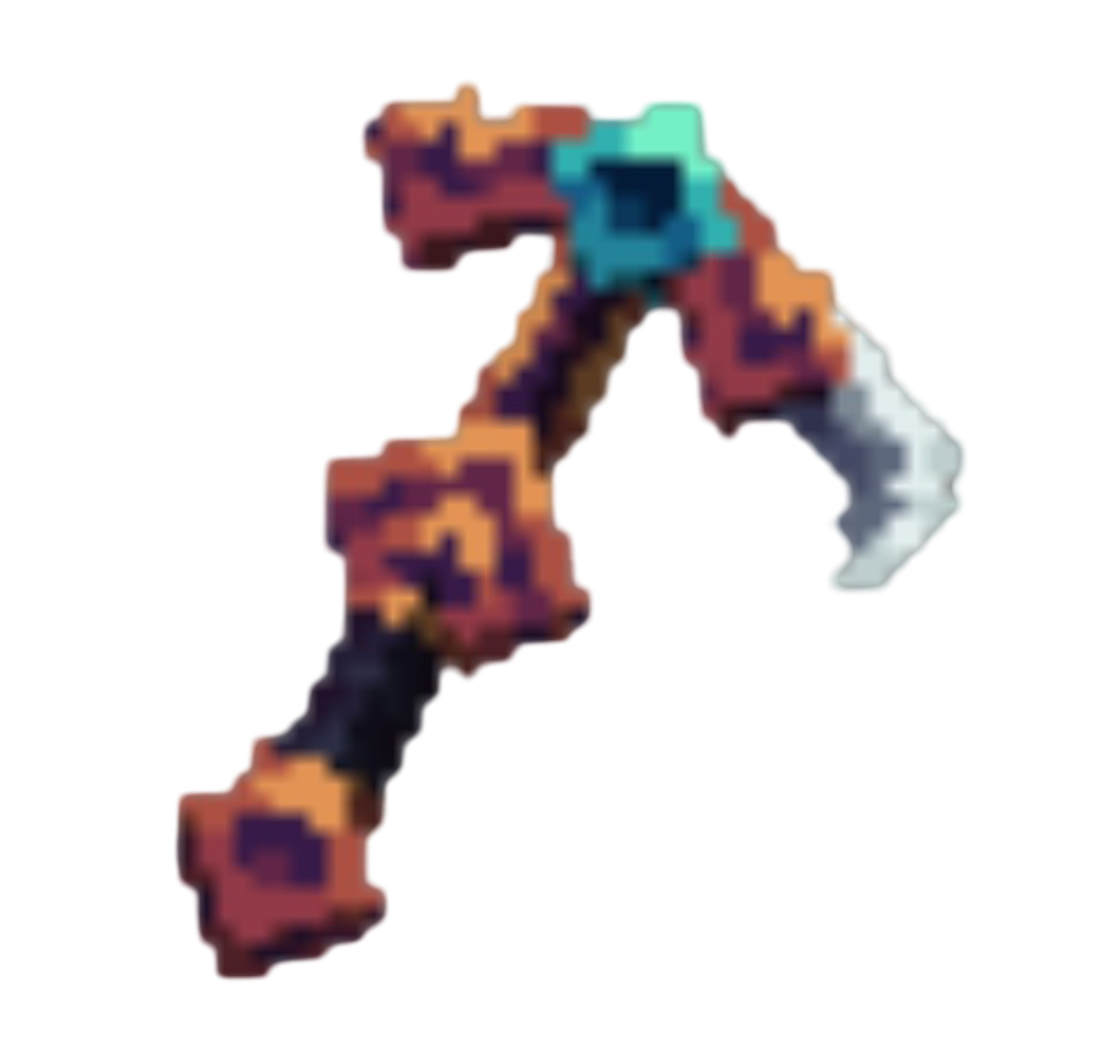 A custom pickaxe with Efficiency 8, Fortune 2, is Unbreakable, and mines adamant ore three times faster. This pickaxe can also be obtained from the Dwarven Miner in Wolfhaven.