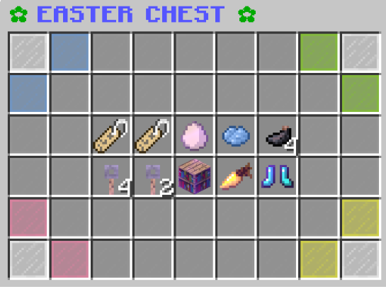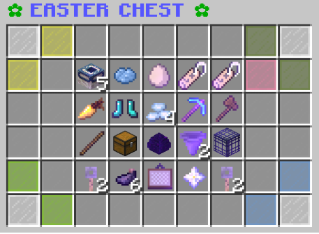 This crate featured blue and Easter chat colors and the Eggcellent and Bunny titles. Most servers had a carrot sword and bunny boots. The crate contents on each server are shown below.
