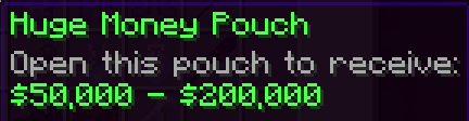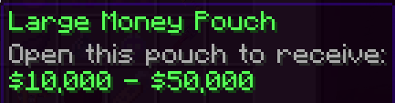 When you right-click on a money pouch, a random amount of money will be added to your bank account. The amount you can receive will depend on the money pouch that you redeem. To see the possible amounts, hover over the money pouch.