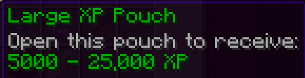 When you right-click on an xp bottle or pouch, you will receive a specific or random amount of xp, depending on the type of bottle/pouch, which is stated in the item's description. When redeemed the amount will appear above your hotbar.