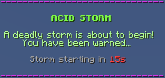 This season of Islands, acid water is back in full swing! Water that surrounds or is placed on your island will start to poison you so be careful! During your time on Manacube, you may see an announcement about an acid storm. The acid storm is a 5 minute event where you will be poisoned if you're not underneath a block. This event is helpful with fishing. You can negate the acid water by drinking an immunity potion
