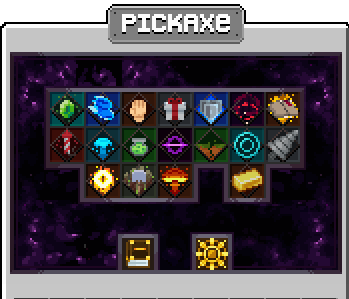 NOTE: Pickaxe enchantments are tied to the player, not a specific pickaxe. Once you purchase an enchantment, the menu will stay the same even if you use a different pickaxe.